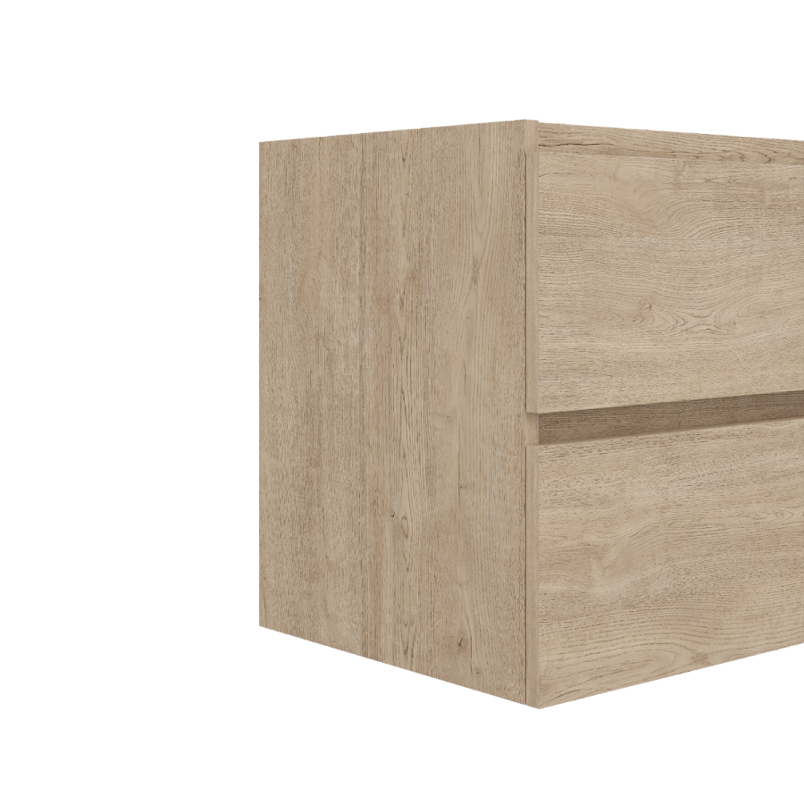 Функциональность тумбы обеспечивается системой хранения с двумя глубокими выдвижными ящиками на скрытых направляющих. Встроенные доводчики гарантируют мягкое и бесшумное закрывание, делая использование комфортным и удобным. Вместительные секции позволяют разместить все необходимые аксессуары и предметы личной гигиены, поддерживая порядок и освобождая поверхность.