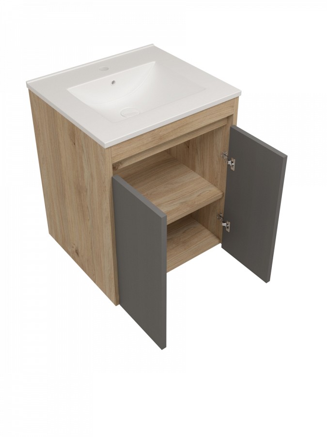 Габариты 500×460×620 мм обеспечивают достаточно места для хранения, сохраняя при этом аккуратный и компактный силуэт. Внутри предусмотрена одна полка, что позволяет удобно разместить бытовые принадлежности, средства гигиены или запасные полотенца. Конструкция оснащена дверцей на надёжных петлях Boyard с доводчиком, который обеспечивает плавное и тихое закрытие.
