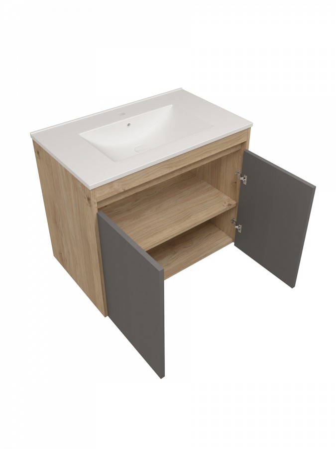 Габариты 750×460×620 мм обеспечивают достаточно места для хранения. Внутри предусмотрена одна полка, что позволяет удобно разместить бытовые принадлежности, средства гигиены или запасные полотенца. Конструкция оснащена дверцей на надёжных петлях Boyard с доводчиком, который обеспечивает плавное и тихое закрытие.