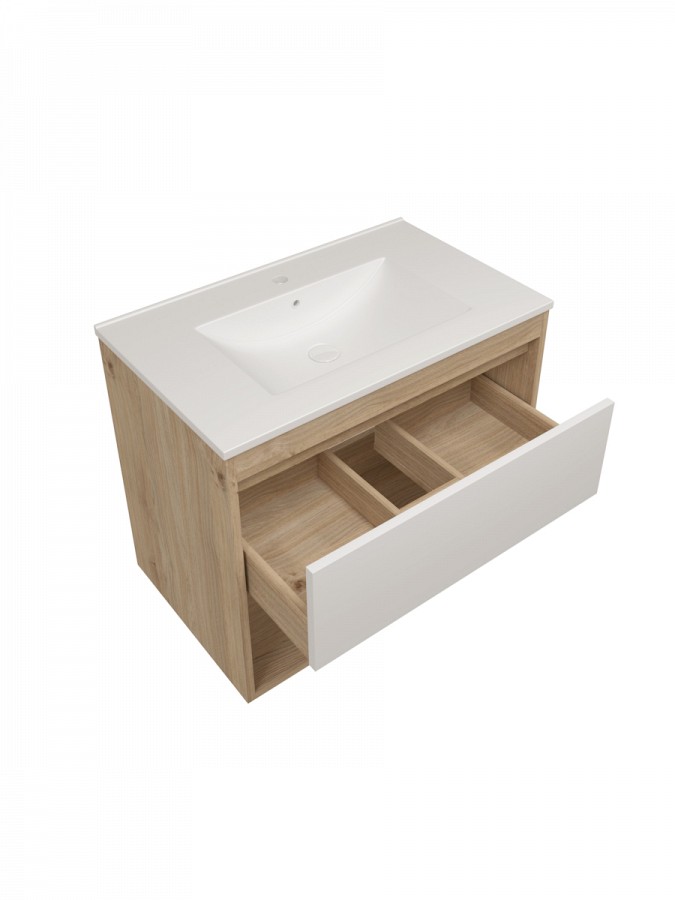 Тумба подвесная для ванной 75 см Teymi Vitra корпус дуб без фасада T60404 — это универсальная мебель для создания стильного и функционального пространства. Ширина 750 мм делает её оптимальным выбором для ванных комнат среднего размера, обеспечивая баланс между вместительностью и компактностью.