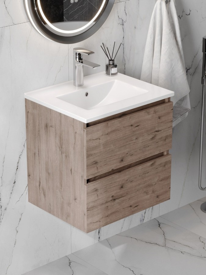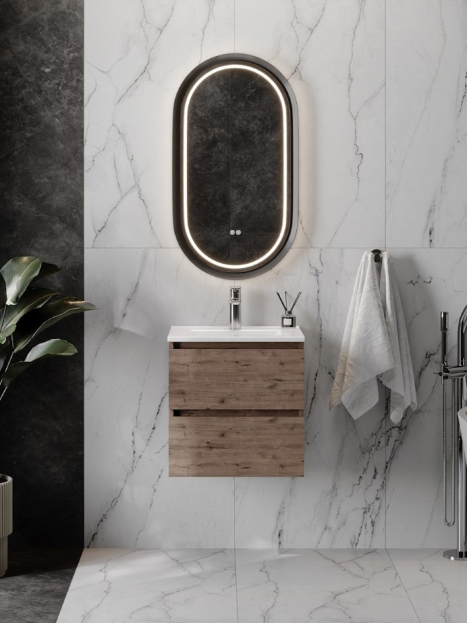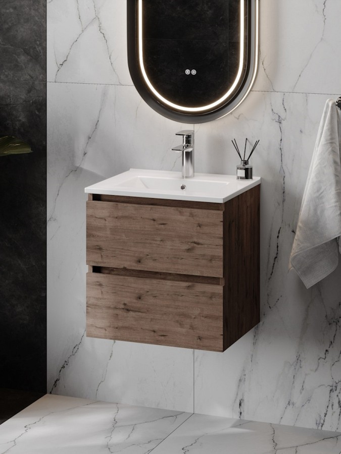 Тумба подвесная с раковиной для ванной 50 см Laina дуб тёмный с раковиной Ritta 50 F16037 от бренда Teymi – это стильное и функциональное решение для современных интерьеров в стиле лофт. Модель удачно сочетает компактные размеры, удобство использования и высокое качество материалов. Конструкция разработана так, чтобы создать в ванной комнате максимум эргономики и визуальной лёгкости, сохраняя при этом практичность.