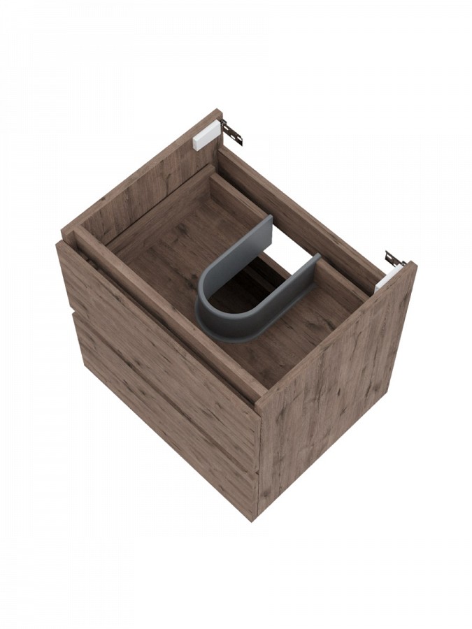 Подвесная тумба выполнена из прочного ЛДСП корпуса толщиной 16 мм и фасадов из МДФ, покрытых матовой ПВХ-плёнкой в оттенке «дуб тёмный». Такое исполнение придаёт мебели естественный вид дерева и подчёркивает современный характер интерьера. Глубина изделия 460 мм и ширина 503 мм позволяют удобно разместить систему хранения, не загромождая пространство.