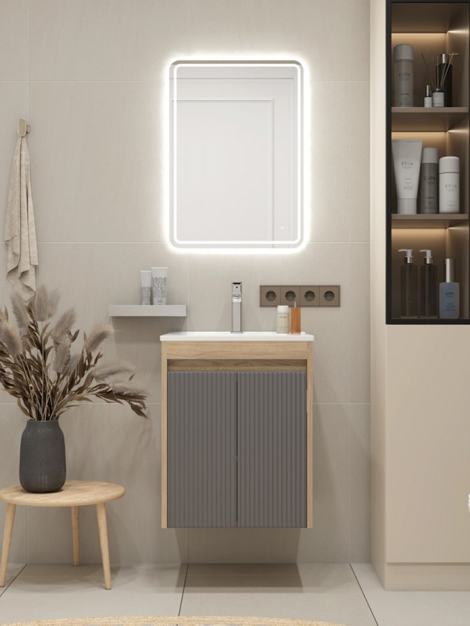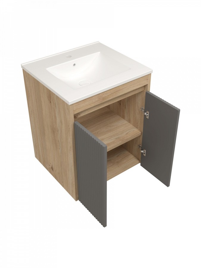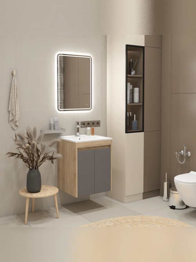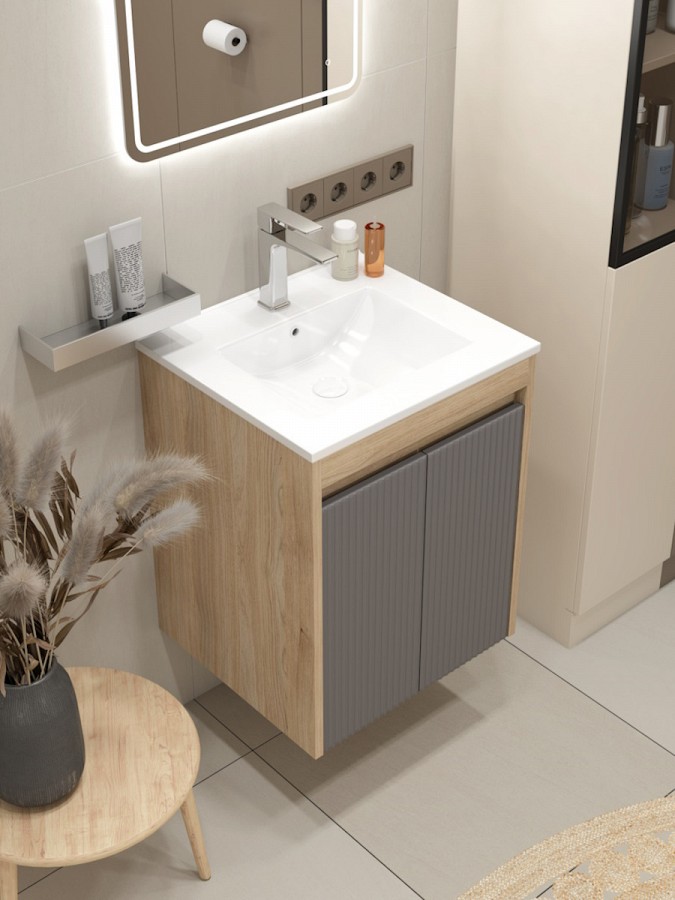 Тумба подвесная с раковиной для ванной 50 см Teymi Netta корпус дуб фасад графит раковина Ritta 50 F16018 — продуманное решение для стильных современных интерьеров, где важно сохранить максимум пространства без ущерба для функциональности.