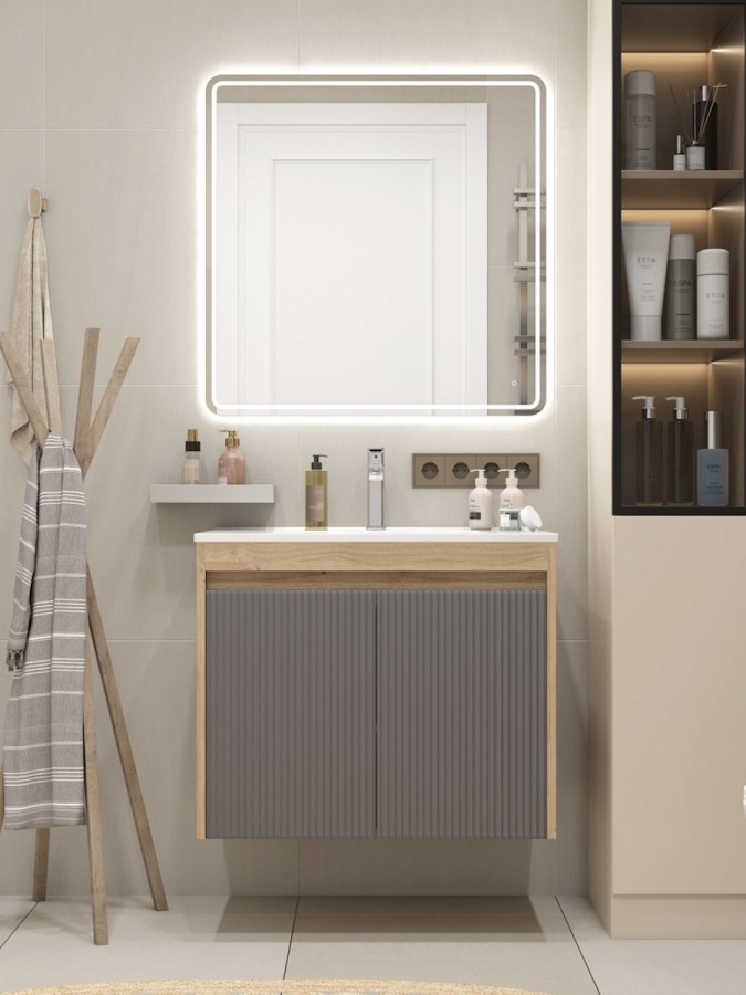 Тумба подвесная с раковиной для ванной 75 см Teymi Netta корпус дуб фасад графит раковина Ritta 75 F16024 — современное и функциональное решение для оформления стильного пространства.