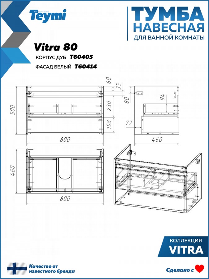 Тумба с раковиной Teymi Vitra 80 см — это продуманное и стильное решение для тех, кто ценит удобство, эстетику и надёжность в каждой детали ванной комнаты.
