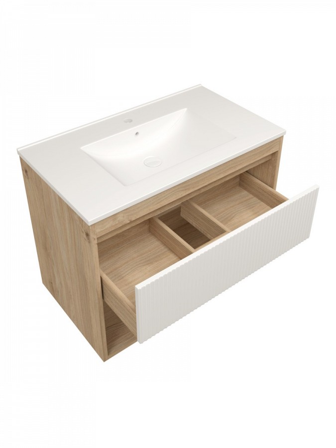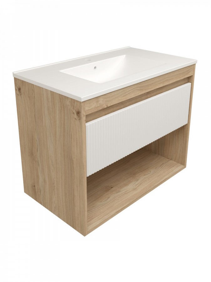 Тумба подвесная с раковиной для ванной 80 см Teymi Vitra корпус дуб фасад белый раковина Ritta 80 F16015 — это современное и продуманное решение для комфортного обустройства ванной комнаты. Модель сочетает стильный внешний вид, надёжные материалы и удобство использования.