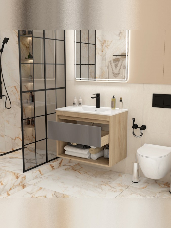 Тумба с раковиной Teymi Vitra 80 см F16016 — это гармоничное сочетание стиля, удобства и продуманной функциональности для вашей ванной комнаты.