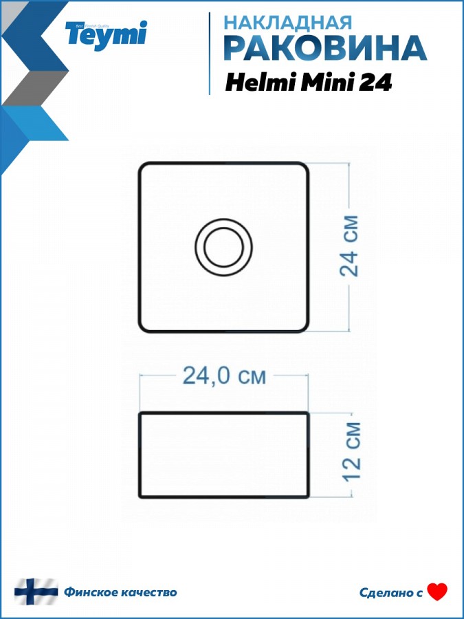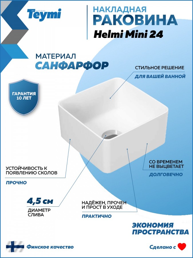 2. Раковина накладная Teymi Helmi Mini 24 artceramic, белая.