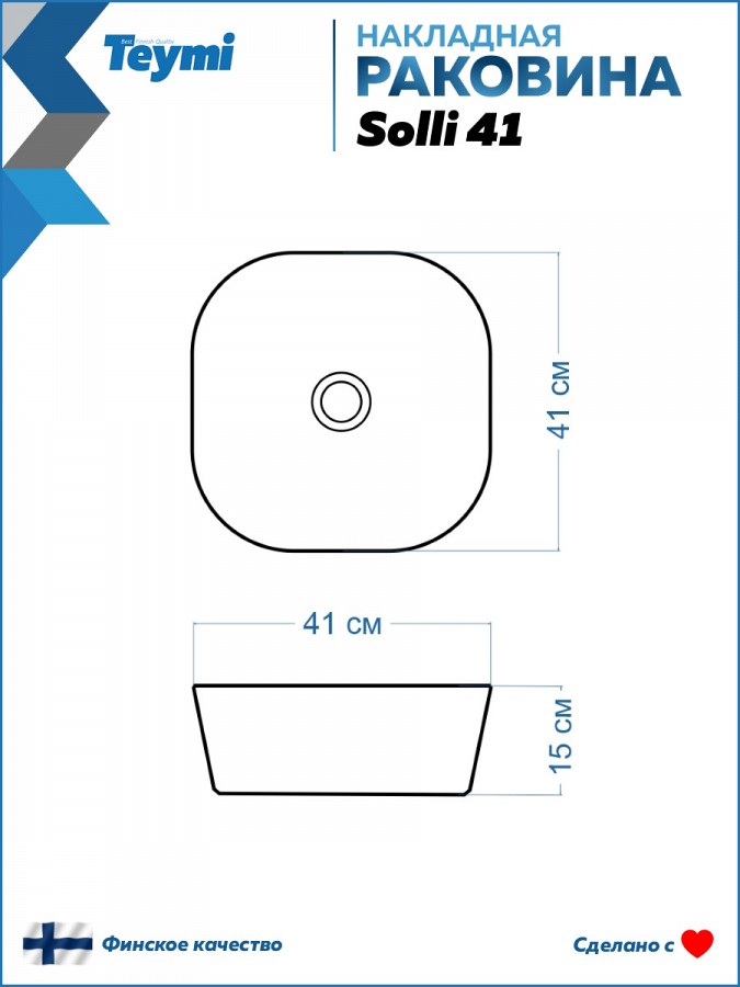 2. Раковина накладная Teymi Solli 41 artceramic, белая.