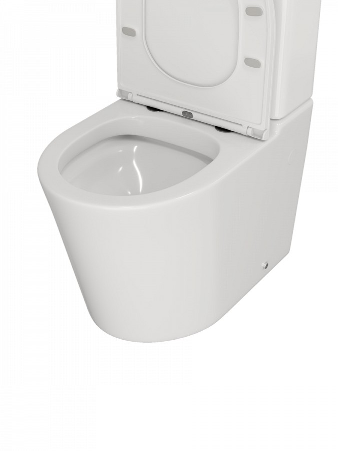 Модель выполнена из прочного санфарфора с белоснежным глянцевым покрытием, устойчивым к загрязнениям и простым в уходе. Овальная безободковая чаша высотой 395 мм обеспечивает удобную посадку и максимально гигиеничное использование — отсутствие ободка препятствует скоплению грязи и облегчает чистку.