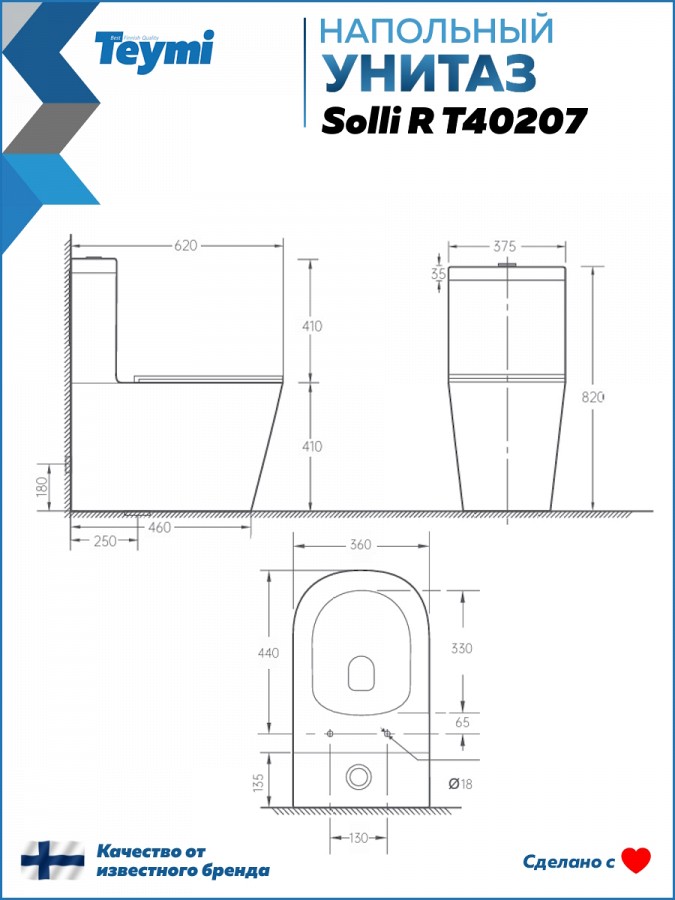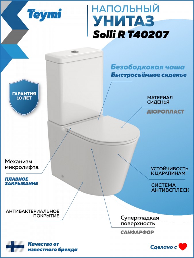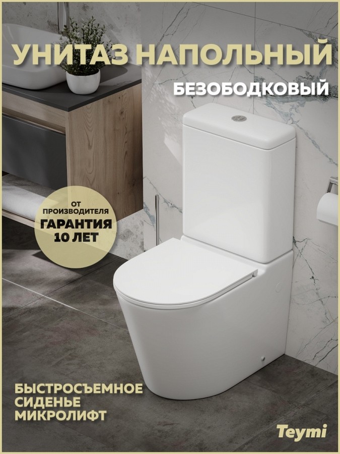 Унитаз напольный Teymi Solli R T40207 — это сочетание современного дизайна, надежных материалов и продуманной функциональности для комфортного использования в ванной комнате.