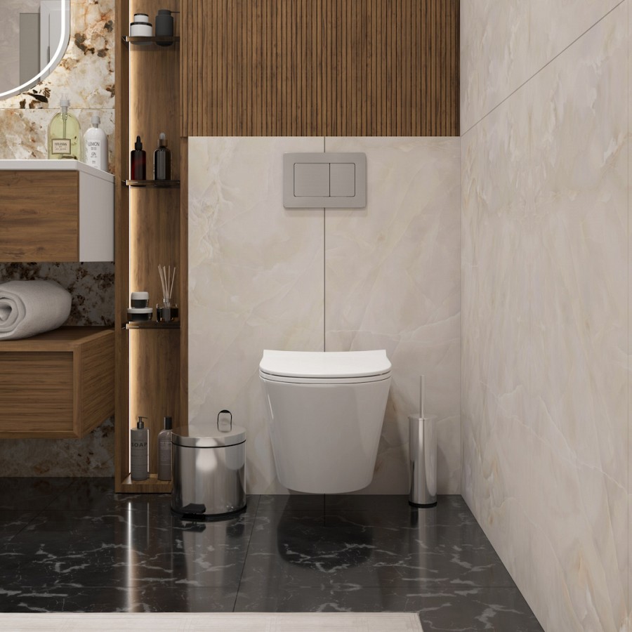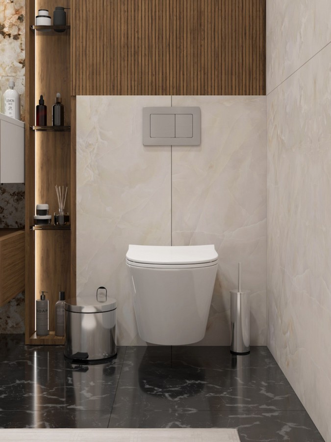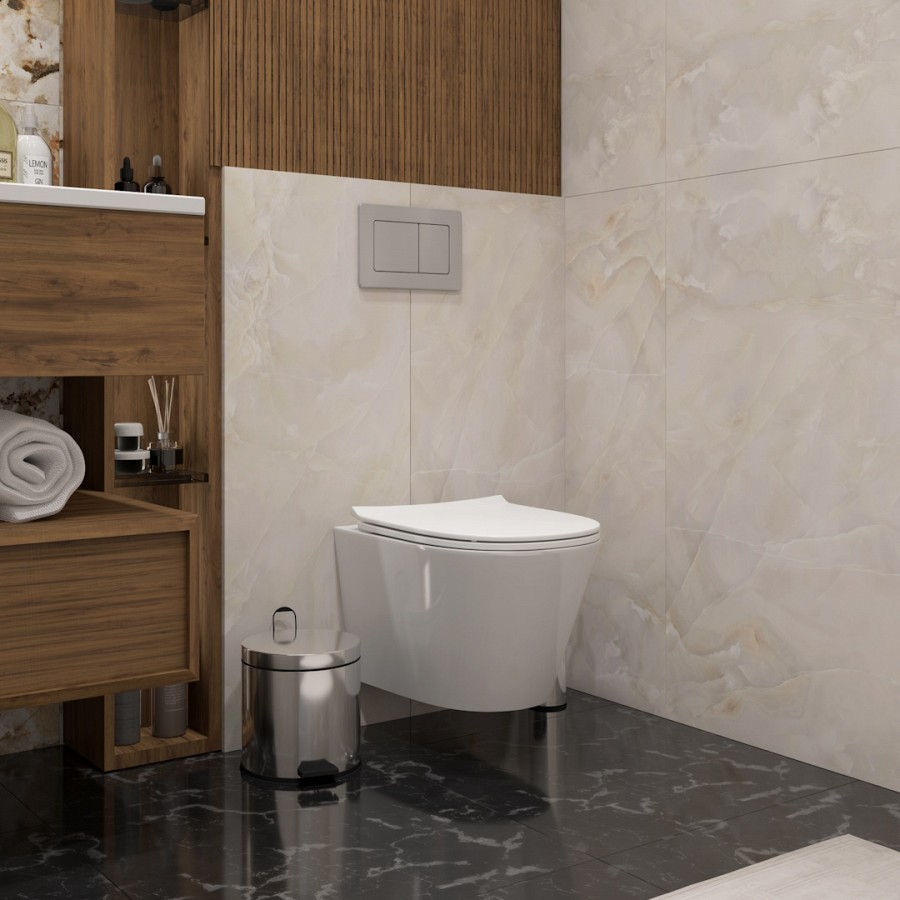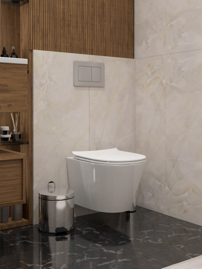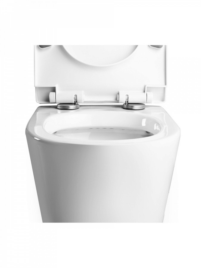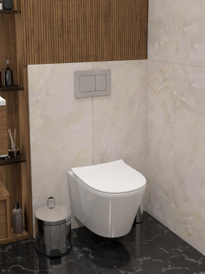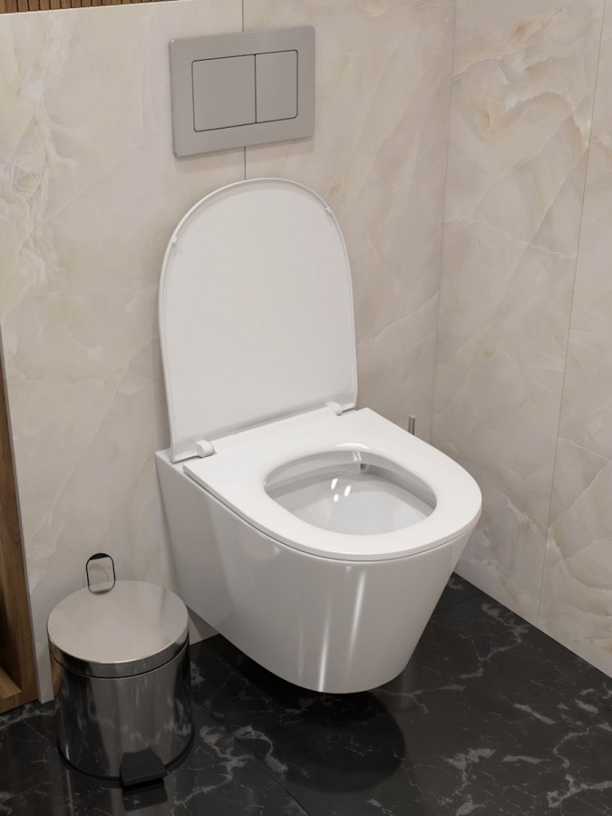 Сиденье из прочного дюропласта оснащено механизмом плавного опускания – никаких резких звуков и неожиданностей. Система антивсплеск делает использование унитаза комфортным, а надежный подвесной монтаж упрощает уборку и визуально облегчает пространство.