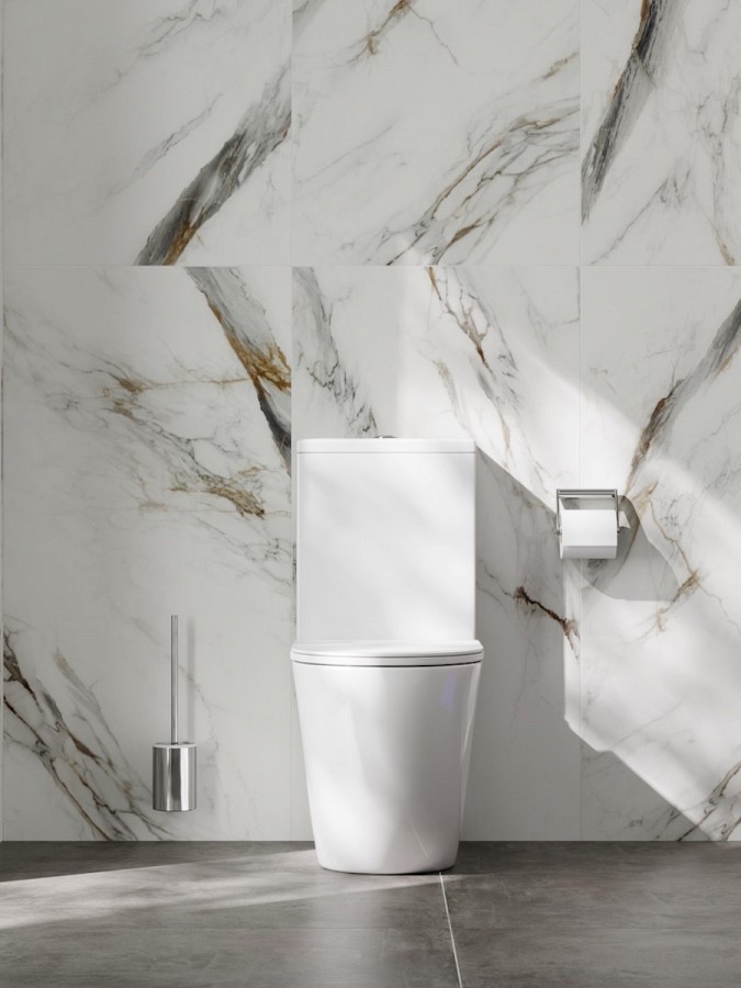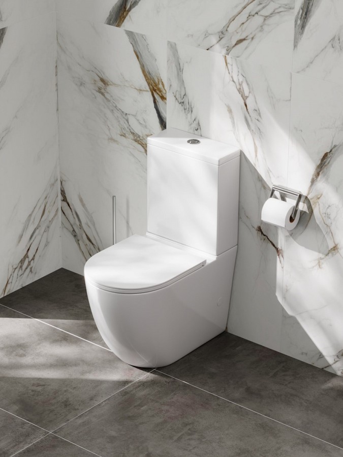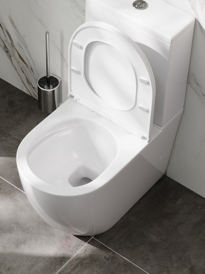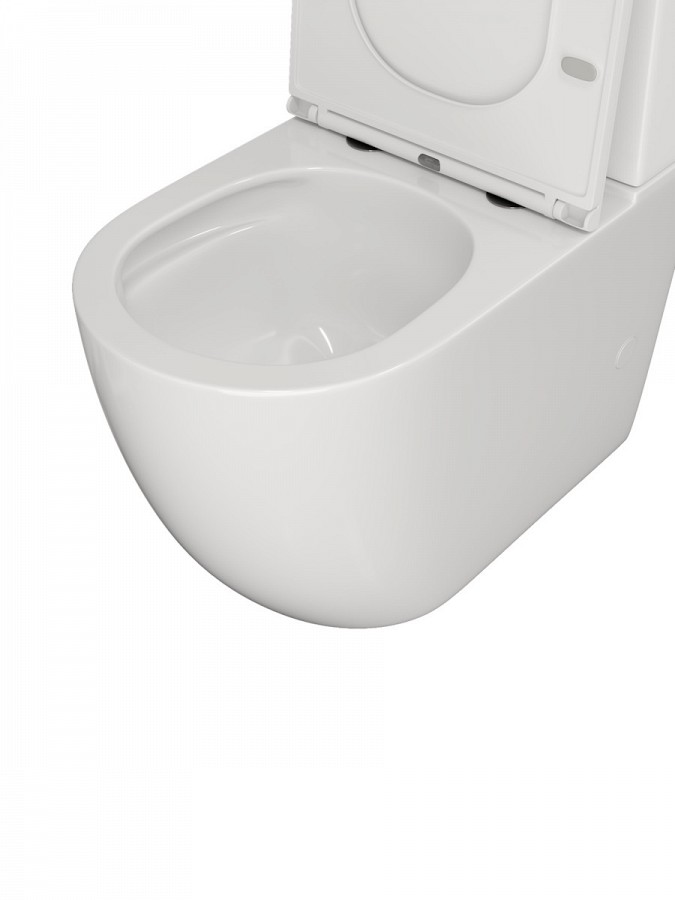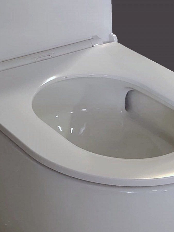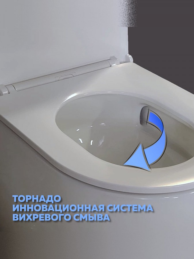 Овальная безободковая чаша обеспечивает высокую гигиеничность, предотвращает скопление грязи и облегчает чистку. Система вихревого смыва равномерно распределяет поток воды, эффективно очищая внутренние поверхности. Функция антивсплеска обеспечивает дополнительный комфорт в использовании.