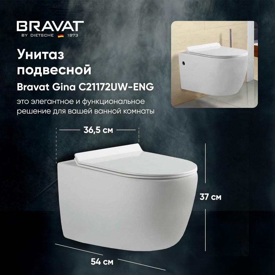 Вам понравился товар Унитаз-подвесной Bravat Gina C21172UW-ENG?