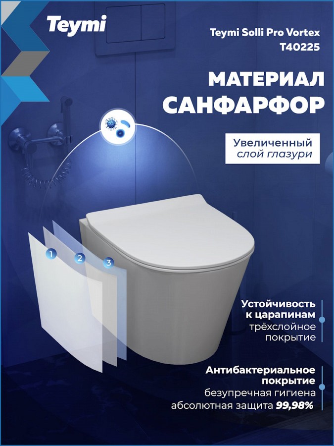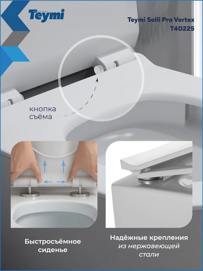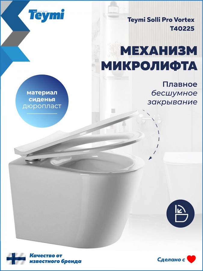Если вы ищете подвесной безободковый унитаз, который сочетает лаконичный дизайн, гигиеничность и долговечность, Teymi Solli Pro Vortex – именно то, что вам нужно.