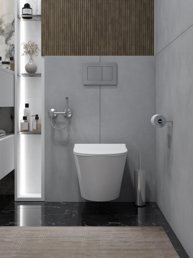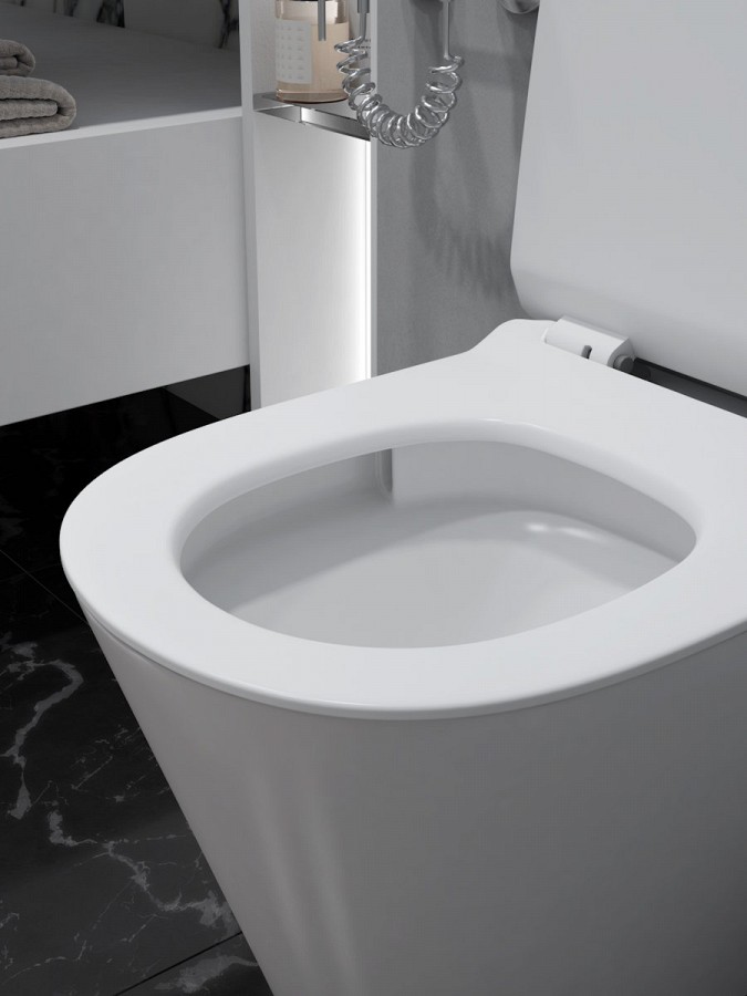 Сиденье из прочного дюропласта оснащено механизмом плавного опускания – никаких резких звуков и неожиданностей. Система антивсплеск делает использование унитаза комфортным, а надежный подвесной монтаж упрощает уборку и визуально облегчает пространство.