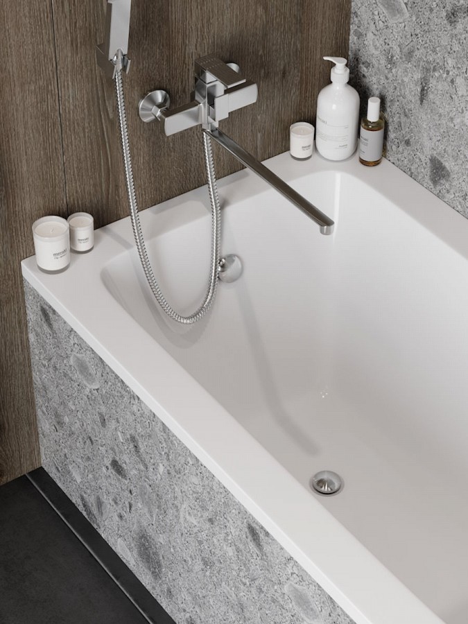 Удобство установки и размеры: Пристенный монтаж позволяет экономить пространство и позволяет использовать ванную в ограниченной площади.